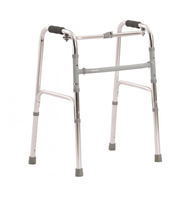 1. Designed for safety and convenience, this walker features push-button mechanisms that may be operated by fingers, palms, or even the side of the hand
